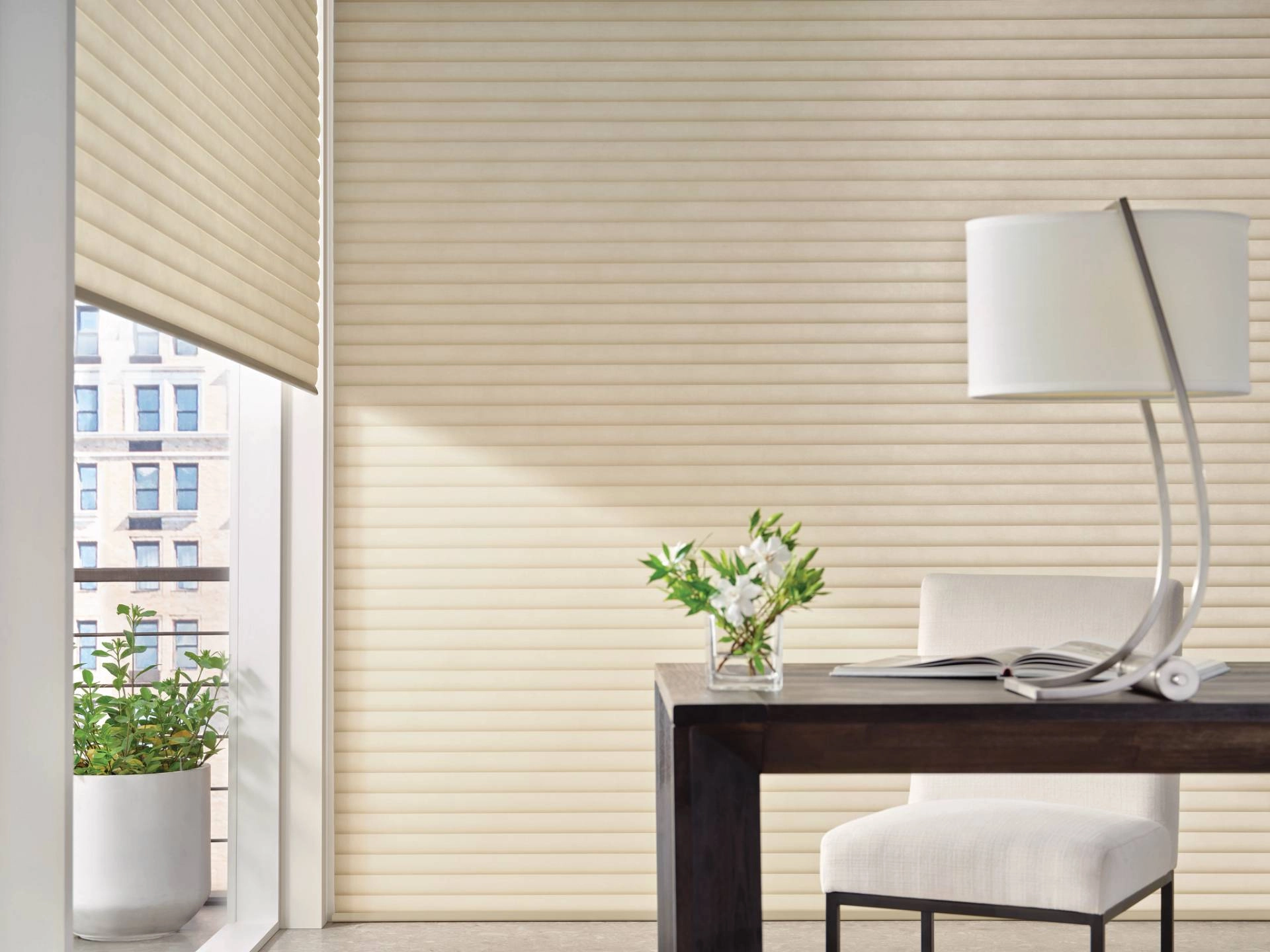 Cellular shades are modern window treatments designed for energy efficiency. The fabric cells create an insulating layer of air as it attempts to pass through your window, fitting close to provide insulation. These corner window shades are available in hundreds of fabrics, with opacity ranging from semi-sheer to room-darkening.